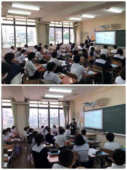 1年3組では、教育実習生が英語の研究授業を行いました。先生方が授業を参観していましたが、生徒の皆さんは元気に活動していました。