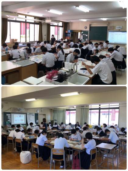 美術室では、手指の消毒の確認をしているところでした。引き続き、手洗い、うがい等基本的な感染症対策が重要です。