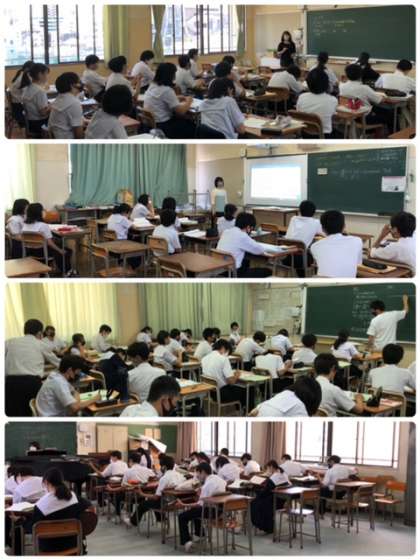 2年生の様子です。1、2組は体育、3組は英語(分割)、4組は数学、5組は音楽の様子です。
