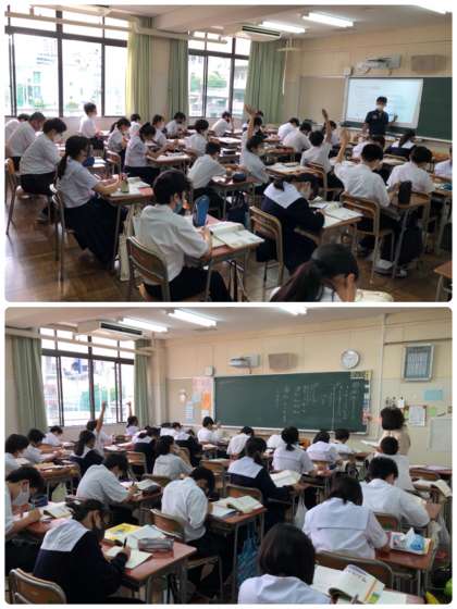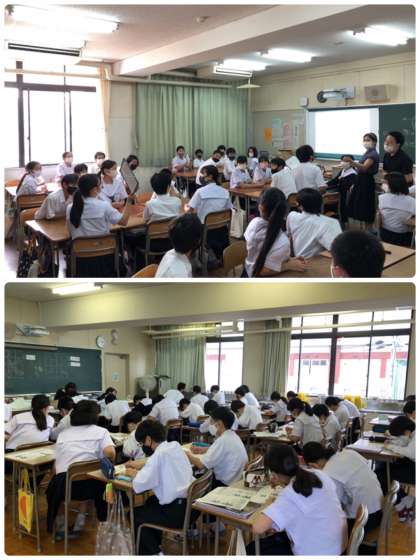 1年生の授業の様子です。社会、国語、理科、英語、美術の様子です。