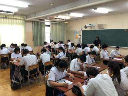 2年生は、各学級で順番に曲を聴き音楽コンクールの選曲をしていました。