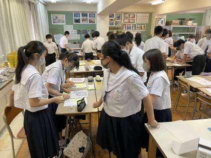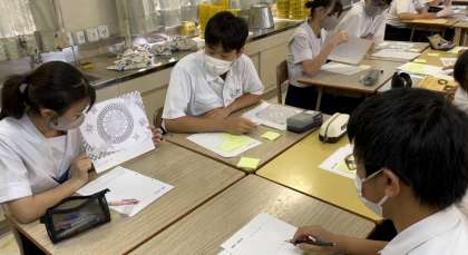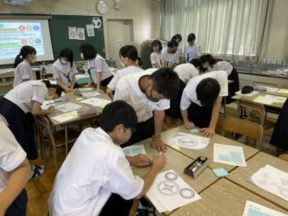 2年生1学期の最後の美術の授業はお互いの作品の相互鑑賞です。