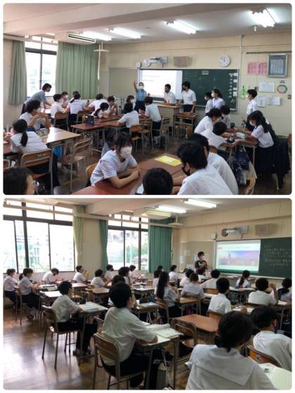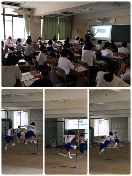 グラウンドの状態が悪いので、体育はピロティでハードル走に取り組んでいました。