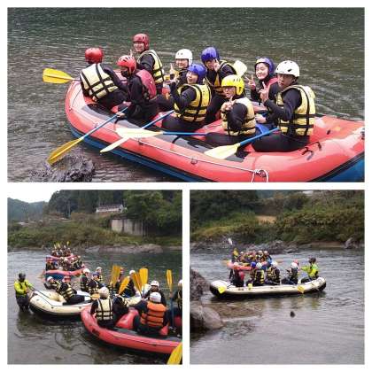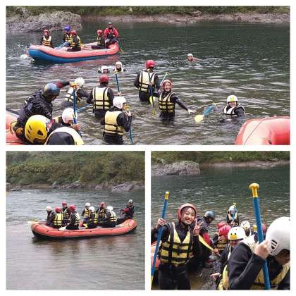 1・4組のラフティングは無事に終了しました。「楽しかったー。」の言葉とともに上陸です。
