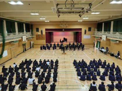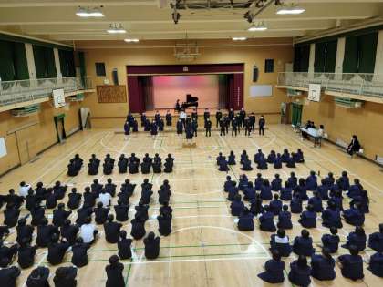 学年ごとに別れて、音楽コンクールのリハーサルを行いました。