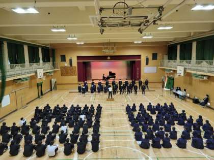 司会の流れ、入退場の動きの確認をしました。また実際に課題曲と自由曲を歌いました。