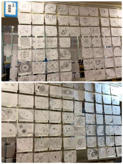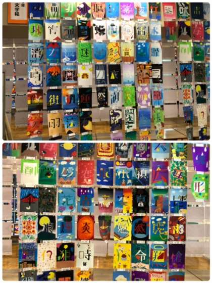 1年生は文字絵、2年生は線織面です。個性的な作品が並んでいます。