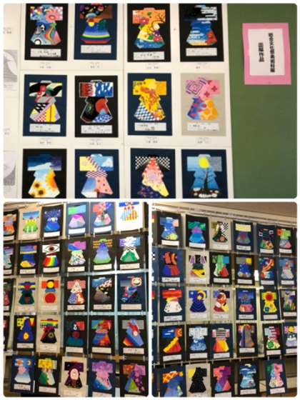 3年生は着物のデザイン、美術部は「楽器を擬人化してみた」と題して、発想を膨らませながら作品を制作しました。