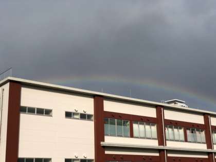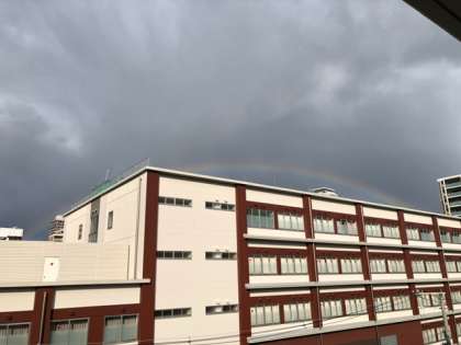 2年生の廊下から上宮高校さんの方を見てみると、校舎の後ろ側に虹がかかっていました。