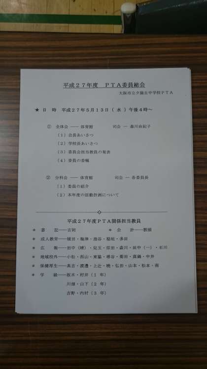 13日(水)にPTA委員総会が開催され、委員の方々と教員とが1年間の活動の計画を検討しました。