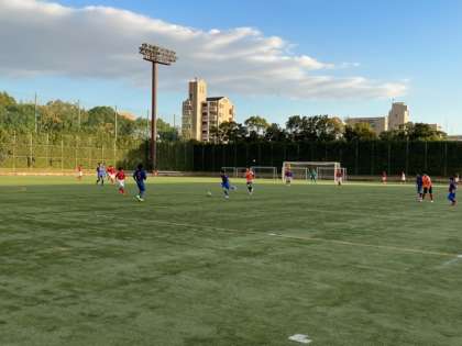 テスト終了後、鶴見緑地球技場へ出向き、練習試合を行いました。