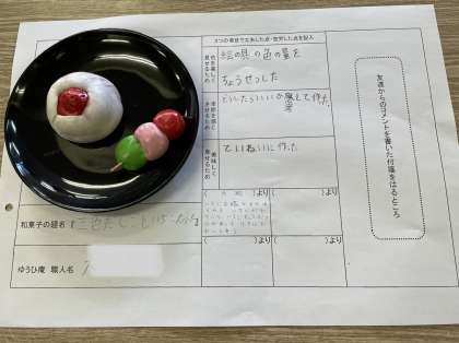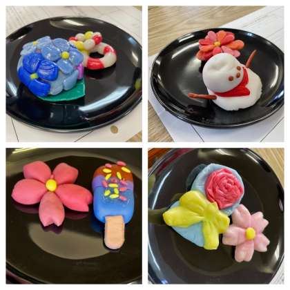 今日は和菓子の相互鑑賞をしました。粘土で作ったお互いの作品を見て、美味しそうに見せるための工夫などを作品から感じ取り、文章にしました。クラス全体の作品をみてもっとこれから頑張りたい!と刺激になった1時間でした。