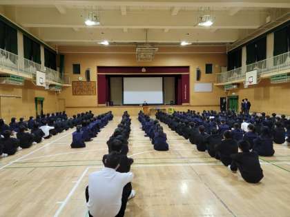 天王寺警察署の方にお越しいただき、2年生を対象に薬物乱用防止教室をひらいていただきました。