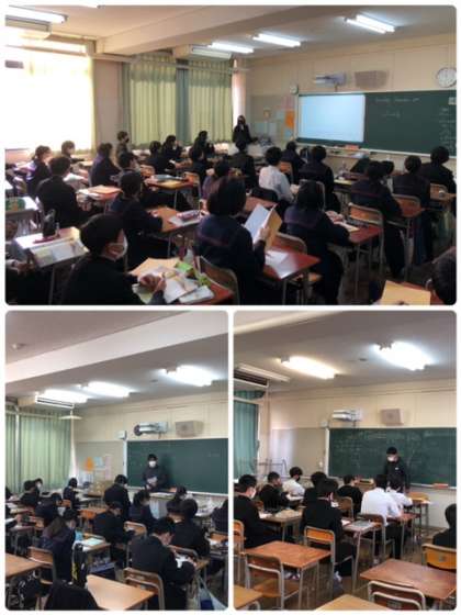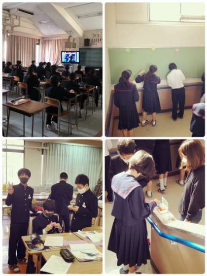 音楽、美術、英語、数学(分割)、体育の授業です。