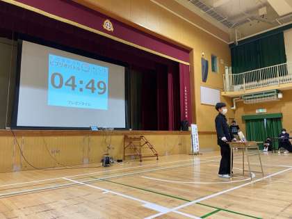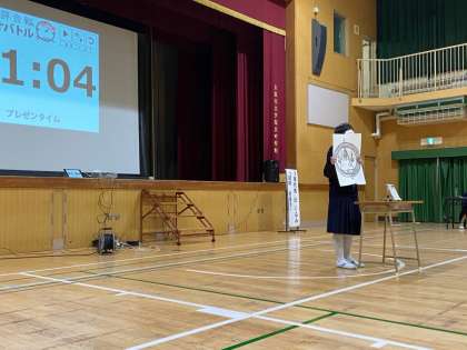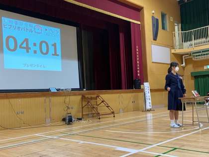 1年生は4時間目に、「ビブリオバトル(知的書評合戦)」のチャンプ本決定戦を行いました。おすすめの本を紹介するスピーチを聞き、最も「読んでみたい!」と思われた本がチャンプ本です。