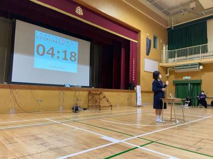 クラスでの代表決定戦を勝ち抜いた5人による決勝戦は、とてもレベルが高く、自分のおすすめの本の良さを伝えようと制限時間内に精一杯アピールしました。