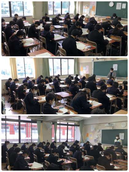 国語、数学、英語、社会、理科の順にテストを受けます。