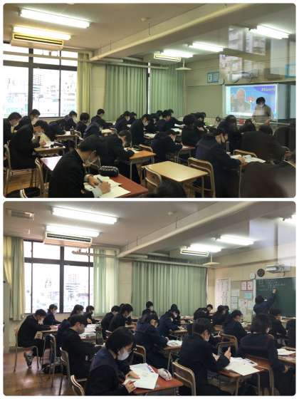 英語、理科、数学、社会の授業です。