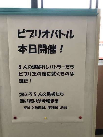 本日3年生は、5時間です。2年生は、6時間目ビブリオバトルを行います。