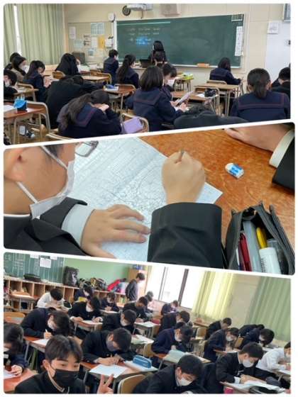 2年生の理科では、気象情報をもとに自分で天気図を作成していました。