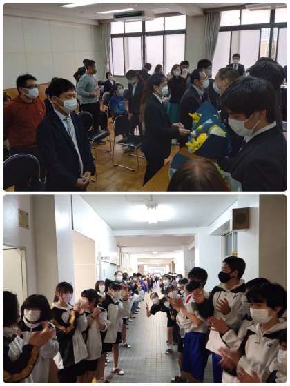 先日、3年生が夕陽丘中学校を巣立っていきましたが、今度は先生方とのお別れです。次の場所でも、夕陽丘中学校で培った経験を生かして活躍してされることを祈っています。