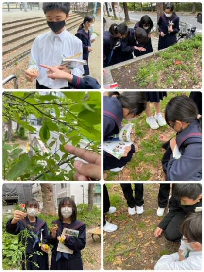 上汐公園で生物の観察を行いました。いつもの公園にも、理科の教科書で勉強する植物や動物がたくさんいることを改めて学びました。
