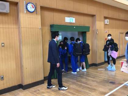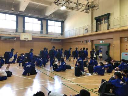 班ごとに出発です。メンバーがバラバラにならないようにまとまって行きましょう。