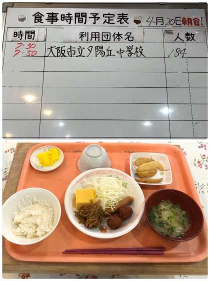 2年前一泊移住は朝食の時間です。1、3、4組から食べます。