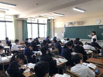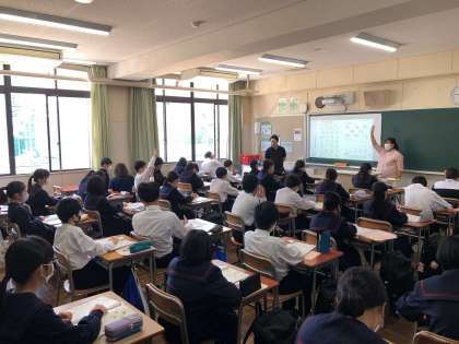 1年1組国語、2組英語の授業の様子です。英語はC−NETの先生の授業です。