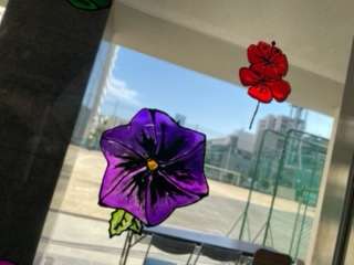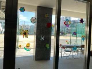 玄関ホールに「新種の花」をテーマに制作した美術部の作品が飾られています。玄関ホールを通った時は鑑賞してみてください。