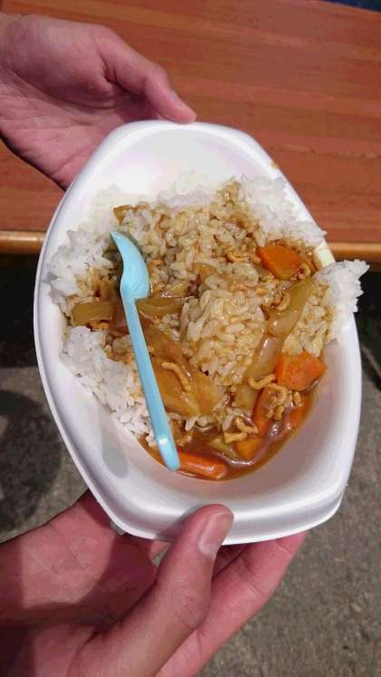 ラフティングのあとは昼食です。昼食はカレーです。