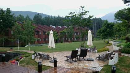 修学旅行3日目の朝です。あいにくの雨ですが、景色は美しく、蛙の鳴き声も聴こえてきます。