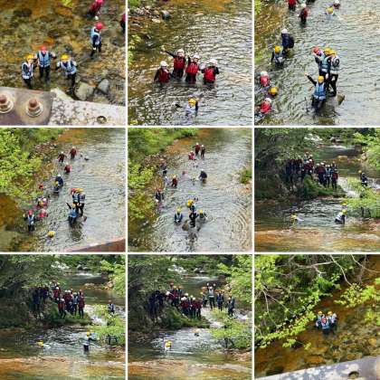 どんどん川を上っていってます。少し寒いですが、みんな元気です。