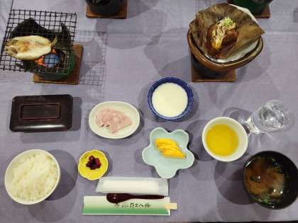 本日の朝食は、朴葉味噌や名宝ハムなど、岐阜県のご当地メニューもありました。