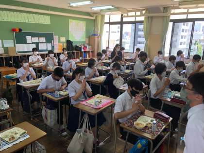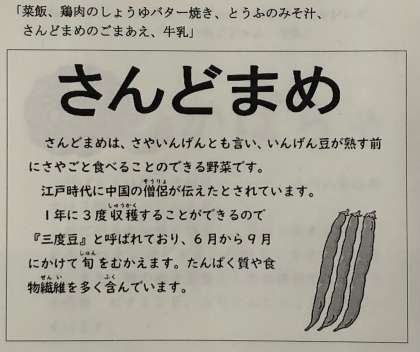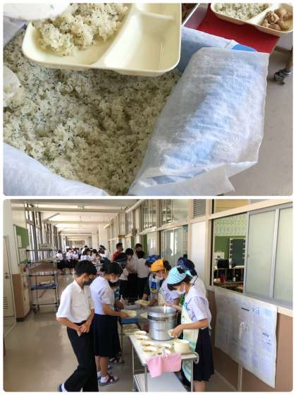 本日のごはんは、菜飯です。ごはんの業者さんで混ぜ込んで作られたものが配送されています。