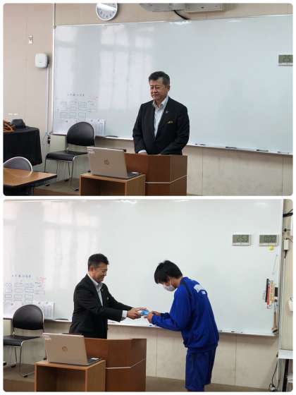 元気アップの方々より各学級に賞状が贈られます。また、参加賞として消しゴムが贈呈されました。