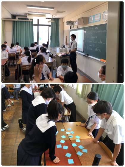 1年生の様子です。教育実習生が英語の研究授業を行いました。