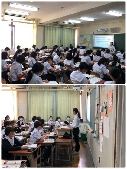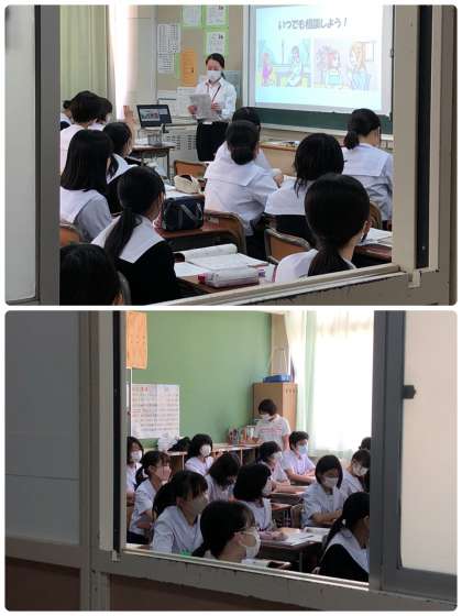 こちらも1年生の様子です。教育実習生が保健の研究授業を行いました。