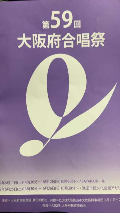 本日、合唱部は大阪狭山市のSAYAKAホールに出向き、大阪府合唱祭に出演しました。