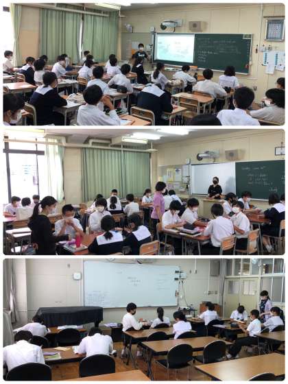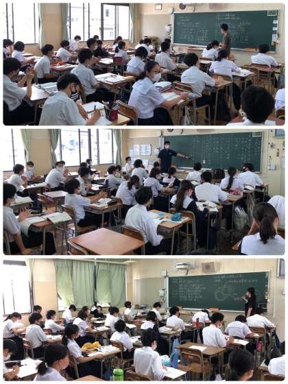 数学、国語、理科、社会、英語の授業です。英語は分割で授業を行っています。