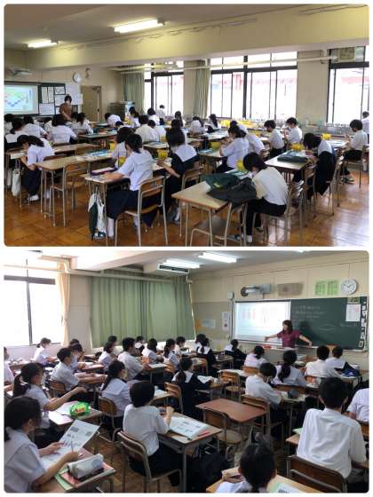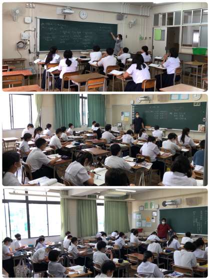 数学、国語、美術、家庭の授業です。数学は分割で授業を行っています。
