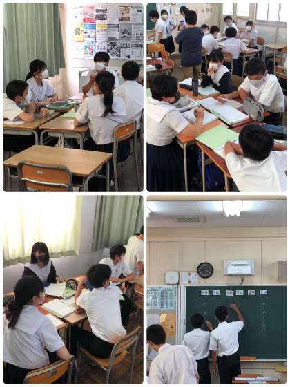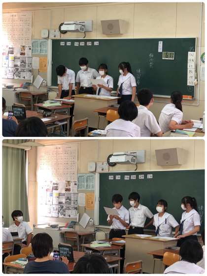 与えられたテーマに基づき個人で俳句をつくりました。それぞれの俳句を班に持ち寄り、その中から班で1つ選んだものをみんなの前で解説しながら発表しました。ただし、中七は抜いた状態で発表し、その中七を他の班に考えてもらいました。解説を聞き、どんな中七か想像を重ねていました。