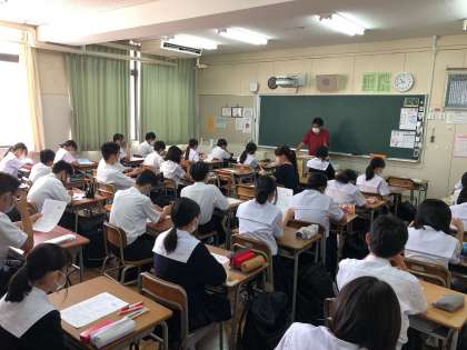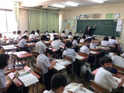 社会、国語の授業です。社会の授業、みんな反応が良いです。