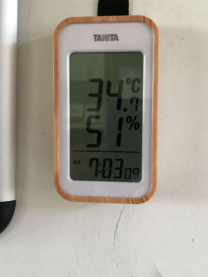 夜間もそれほど気温が下がらず、校舎の4階の教室では既に35度近くを示しています。