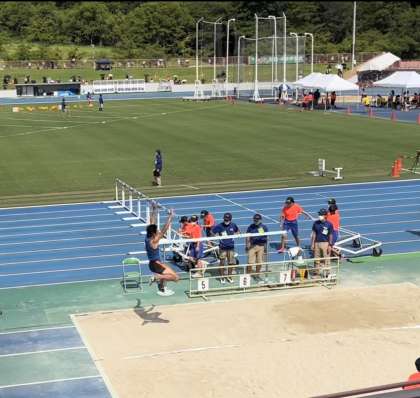 走幅跳に出場した3年生は6位。頑張ってくれました。体の状態があまりよくないなかでしたが、全中につながる跳躍になったと思います。