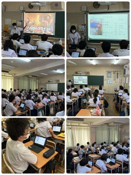 理科では、発表を行っていました。みんな発表者の話を食い入るように聴いていました。