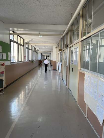 校舎を開けて回っていると、廊下を掃除してくれている人がいました。このような姿をみていると心が洗われます。