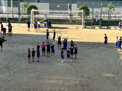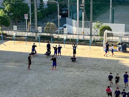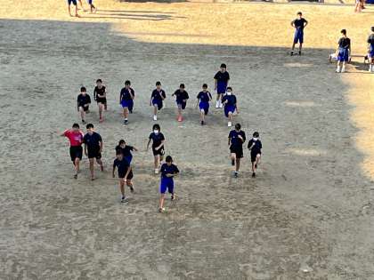 校舎から運動場を見下ろすと陸上部の人たちが練習をしていました。
