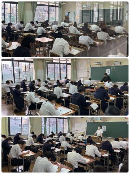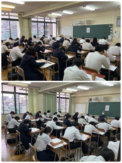 英語、国語、社会、理科、数学の順にテストを受けます。