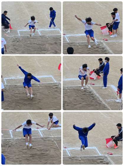 体育の授業です。走幅跳の記録を取っていました。